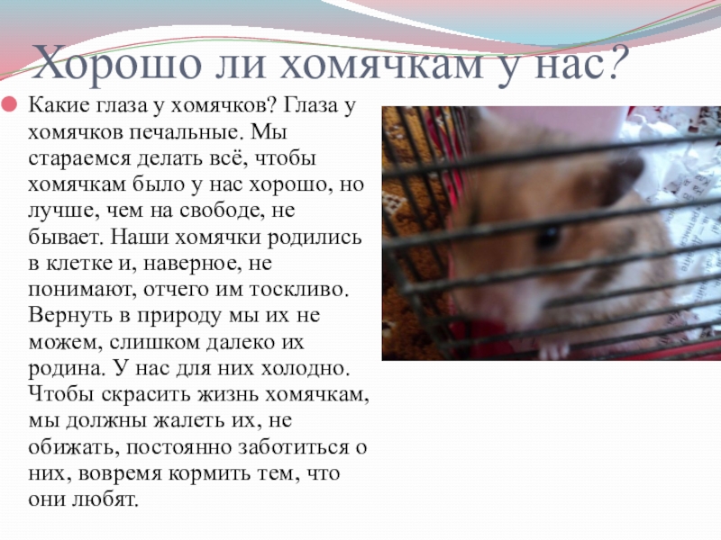 Слайд 21Хорошо ли хомячкам у нас?