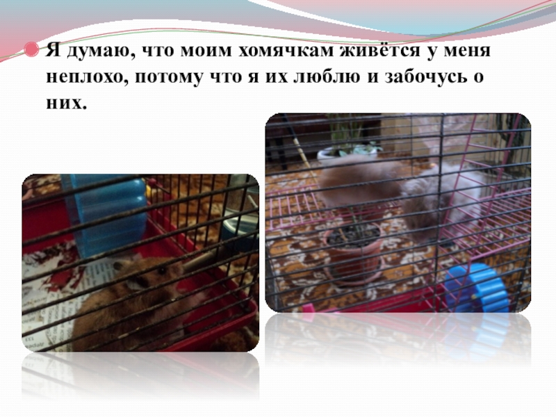Слайд 22Я думаю, что моим хомячкам живётся у меня неплохо, потому что
