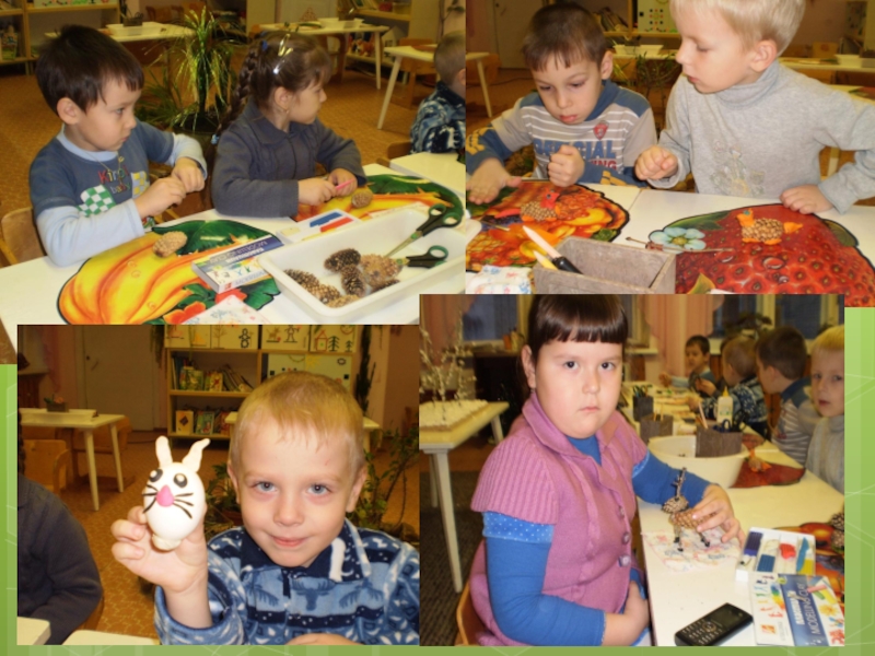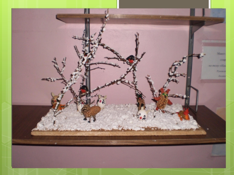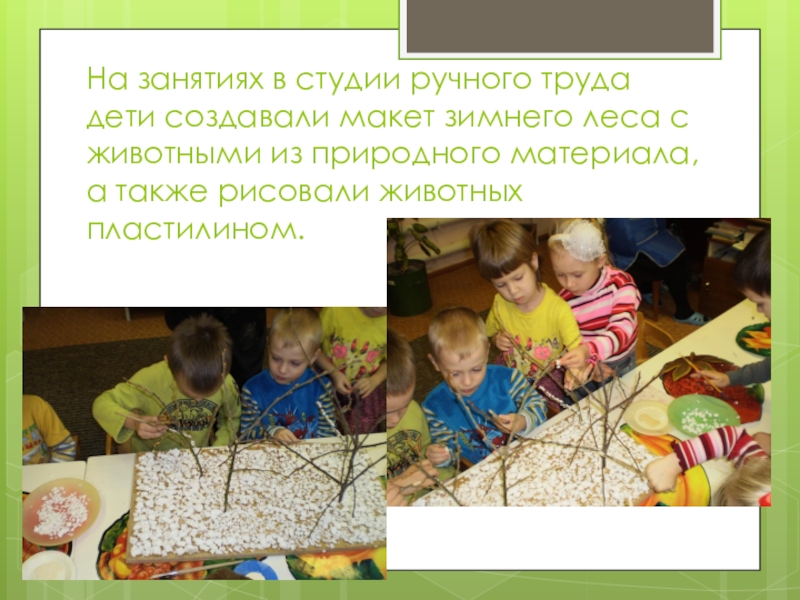 Слайд 15На занятиях в студии ручного труда дети создавали макет зимнего леса
