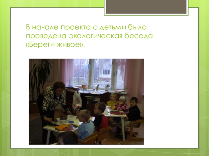 Слайд 6В начале проекта с детьми была проведена экологическая беседа «Береги живое».
