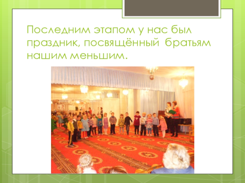 Слайд 22Последним этапом у нас был праздник, посвящённый братьям нашим меньшим.
