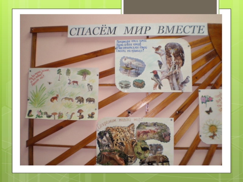 и провести совместно с родителями мероприятия творческого характера для объединения усилий семей в сохранении животного мира планеты. Показать окружающим своё отношение к проблеме.