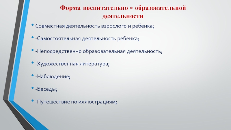 Форма воспитательно - образовательной