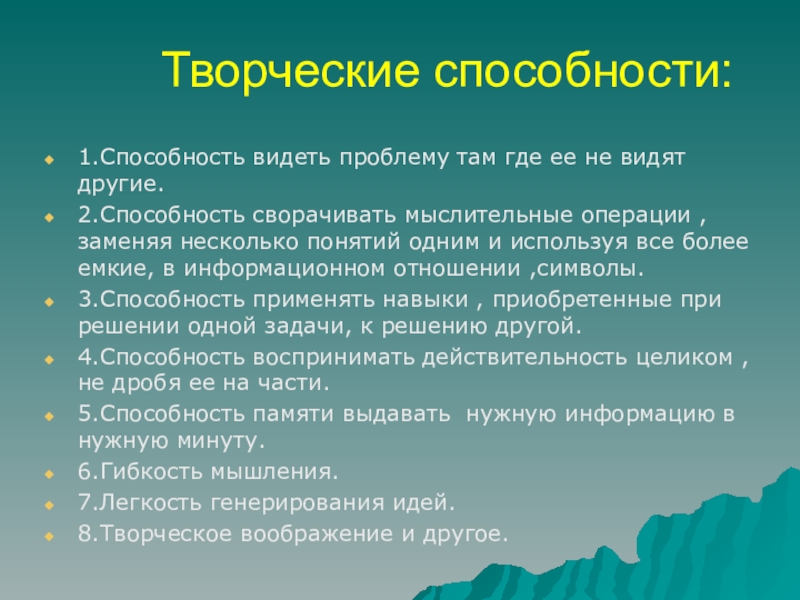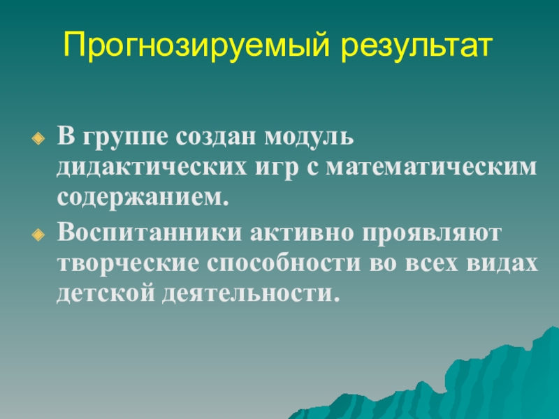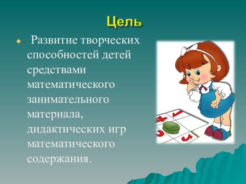Слайд 8 Развитие творческих способностей детей средствами математического занимательного материала, дидактических игр