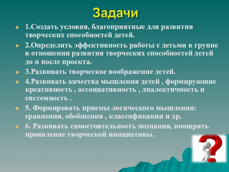 4.Развивать качества мышления детей , формирующие креативность , ассоциативность , диалектичность и системность .