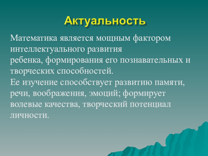 Слайд 7Математика является мощным фактором интеллектуального развития