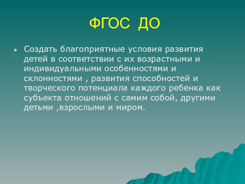 и индивидуальными особенностями и склонностями , развития способностей и творческого потенциала каждого ребенка как субъекта отношений с самим собой, другими детьми ,взрослыми и миром.