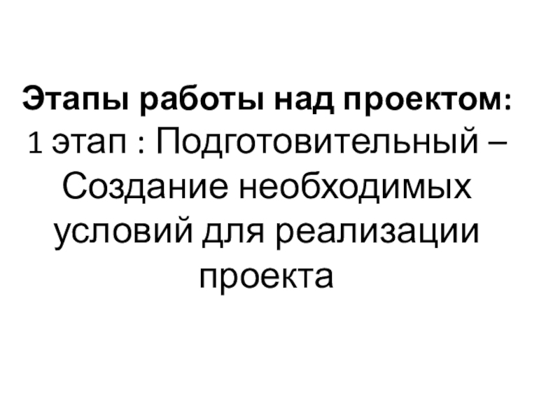 Слайд 5 Этапы работы над проектом: 1 этап : Подготовительный – Создание необходимых условий