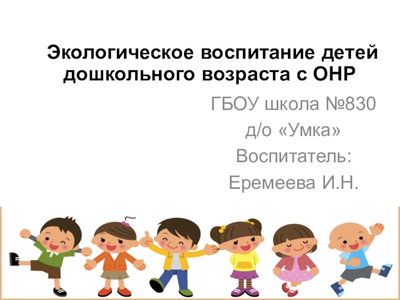 ГБОУ школа №830д/о «Умка»Воспитатель:Еремеева И.Н.Экологическое воспитание детей дошкольного возраста с ОНР