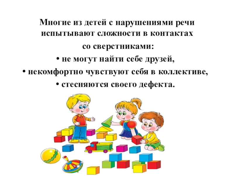 Многие из детей с нарушениями речи испытывают сложности в контактах со сверстниками: не могут найти себе друзей,
