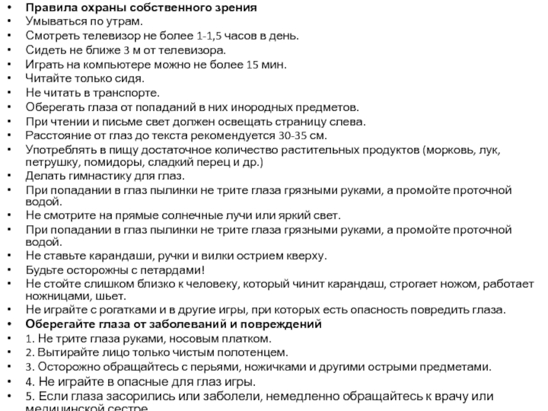 5. Если глаза засорились или заболели, немедленно обращайтесь к врачу или медицинской сестре.