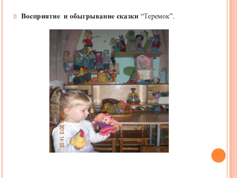 Слайд 17Восприятие и обыгрывание сказки “Теремок”.