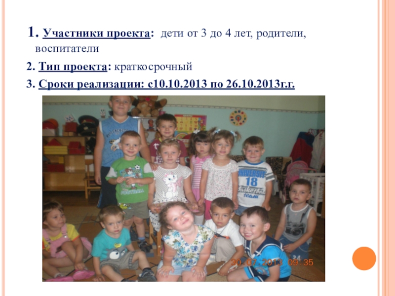 Слайд 2 1. Участники проекта: дети от 3 до 4 лет, родители,