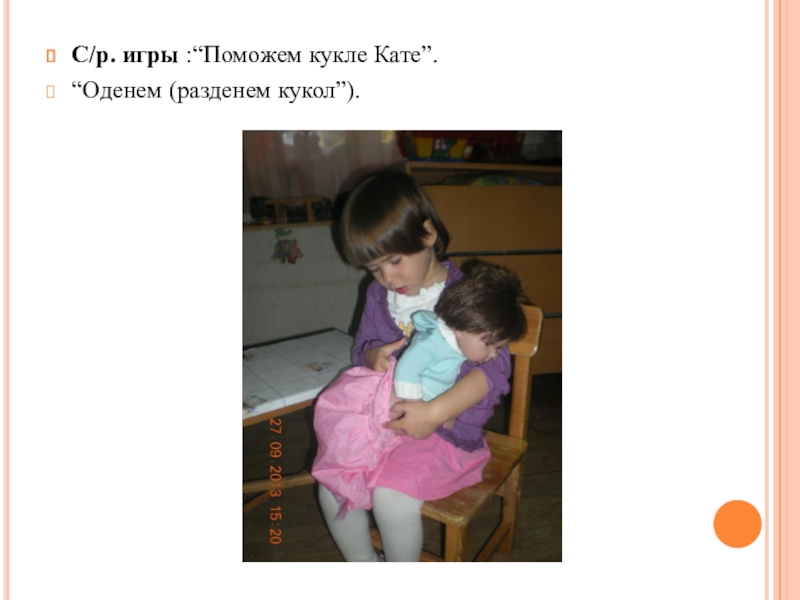 Слайд 18С/р. игры :“Поможем кукле Кате”.