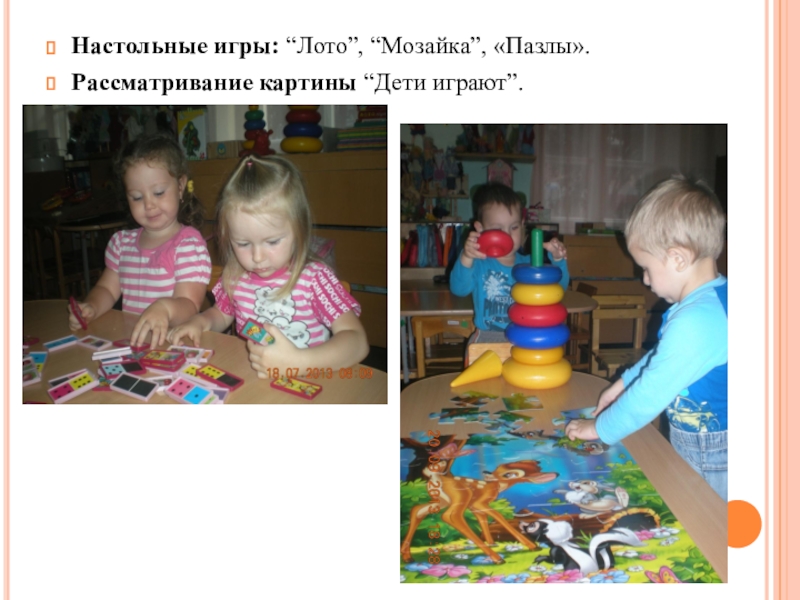 Слайд 14Настольные игры: “Лото”, “Мозайка”, «Пазлы».
