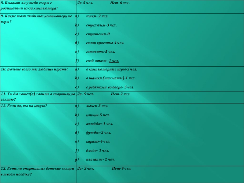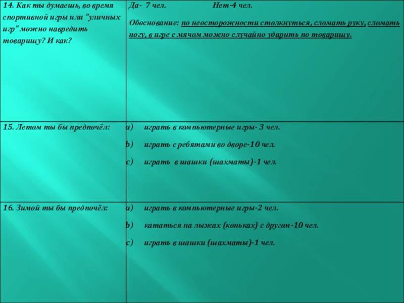 3. Провести анкетирование у одноклассников, которое поможет выяснить, в какие игры любят играть ученики и их отношение к играм. Проанализировать собранную информацию.