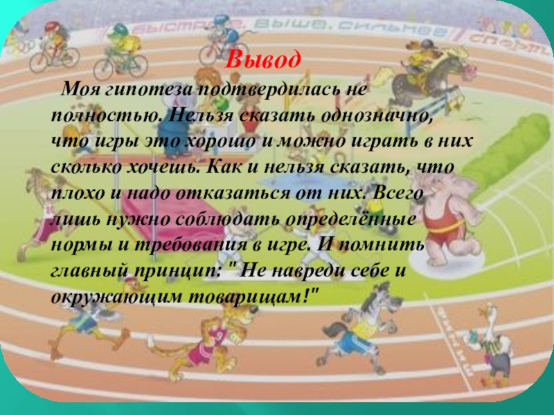 Вывод Моя гипотеза подтвердилась не полностью. Нельзя сказать однозначно, что игры это хорошо и можно играть в