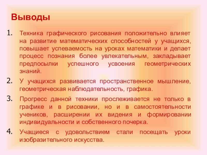 1. Доказать положительное влияние техники графического рисования на развитие математических