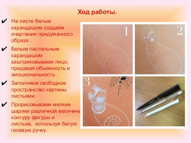 Прорисовываем мелкие шарики различной величины по контуру фигуры и листьев, используя белую гелевую ручку.
