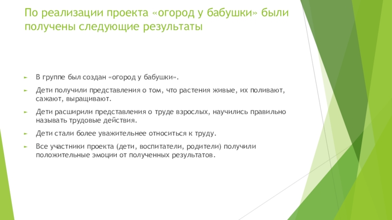 Слайд 16По реализации проекта «огород у бабушки» были получены следующие результаты