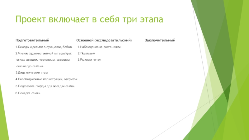 Слайд 7Проект включает в себя три этапа