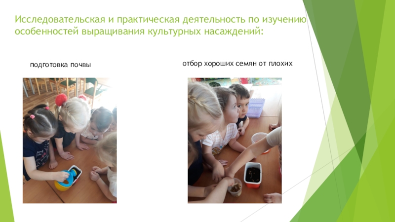 Слайд 12Исследовательская и практическая деятельность по изучению особенностей выращивания культурных насаждений: