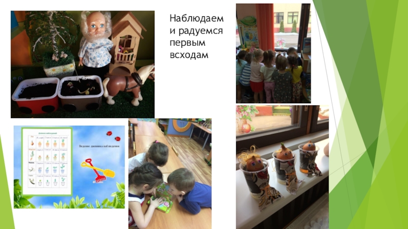 Слайд 14Наблюдаем и радуемся первым всходам