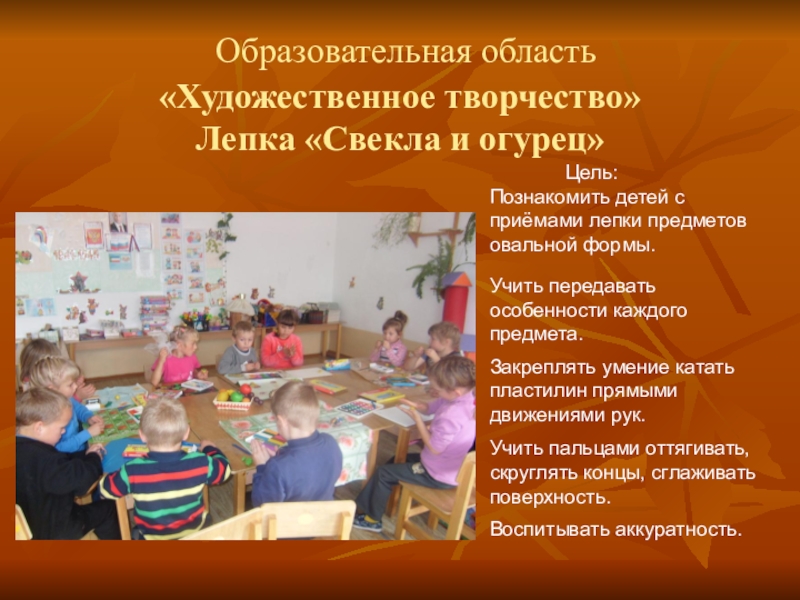 Учить пальцами оттягивать, скруглять концы, сглаживать поверхность.