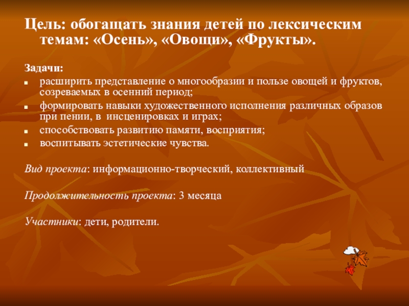 Уточнять и расширять активный словарь детей по теме « Осень»