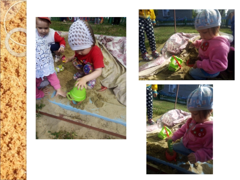 дать знания о том, что песок нельзя брать в рот, разбрасывать, засорять глаза себе и товарищам, сыпать на голову.