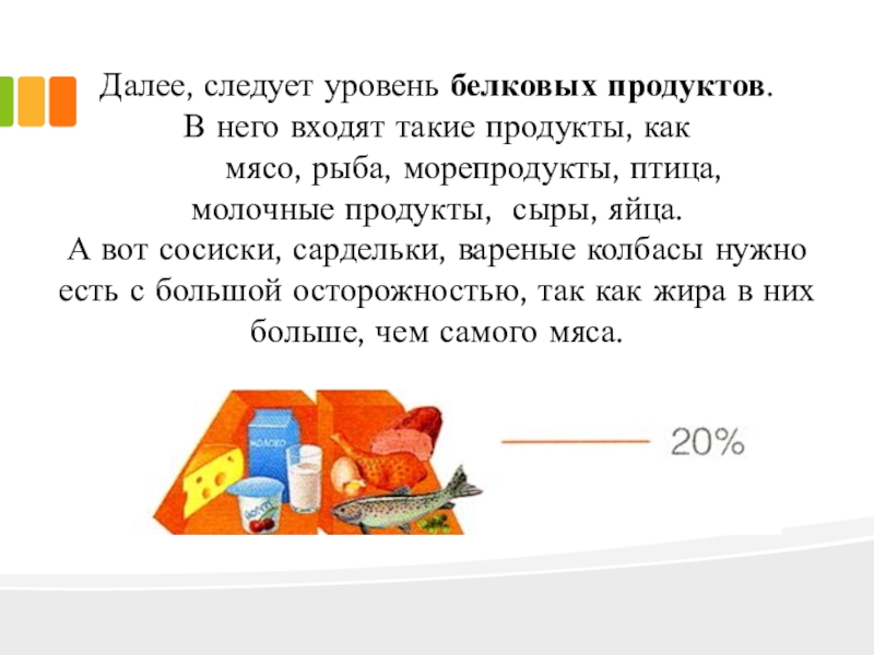 Слайд 8Далее, следует уровень белковых продуктов. В него входят такие продукты, как