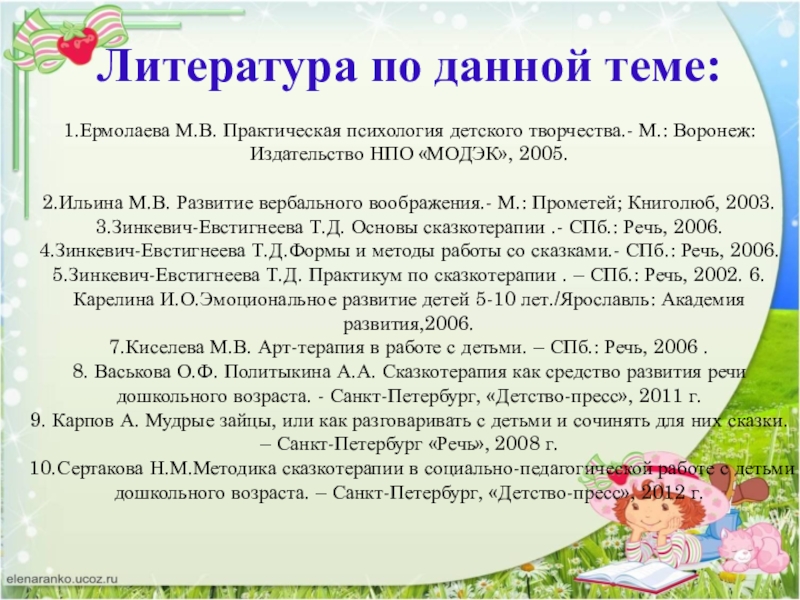 3.Зинкевич-Евстигнеева Т.Д. Основы сказкотерапии .- СПб.: Речь, 2006.