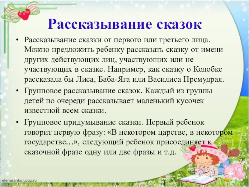 Слайд 12Рассказывание сказок