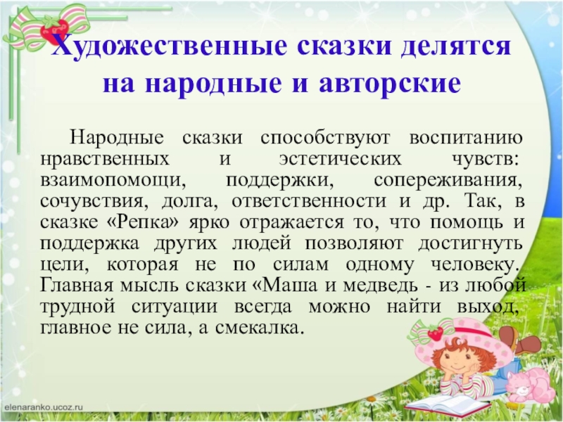 Художественные сказки делятся на народные и авторские