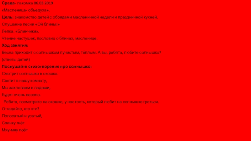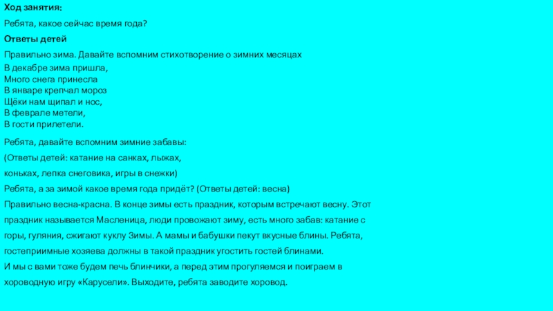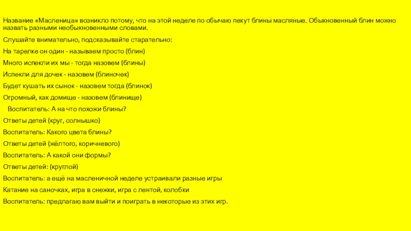 Слайд 14Воспитатель: А еще сегодня последний день масленицы. Как вы уже знаете,
