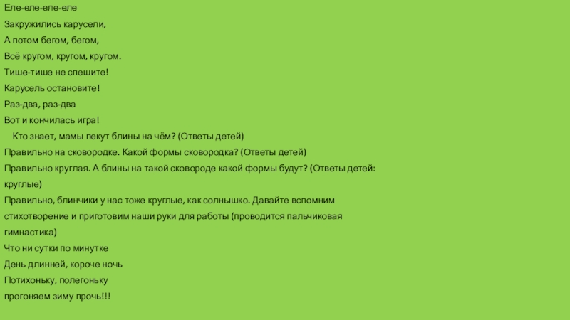 Правильно, блинчики у нас тоже круглые, как солнышко. Давайте вспомним