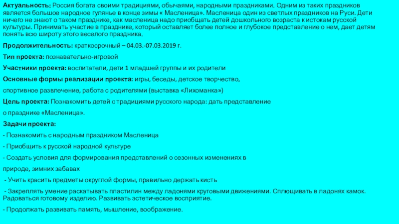 Слайд 2Актуальность: Россия богата своими традициями, обычаями, народными праздниками. Одним из таких
