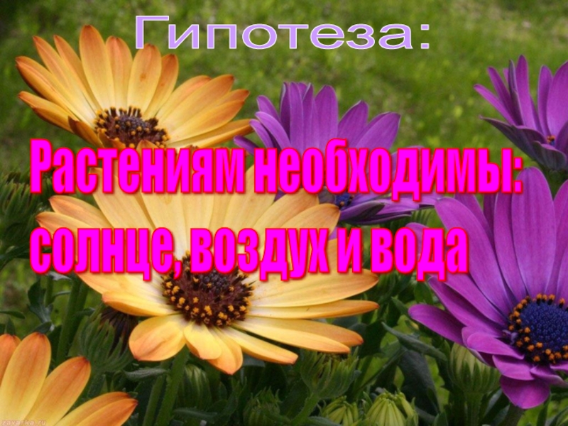 Гипотеза:Растениям необходимы:  солнце, воздух и вода