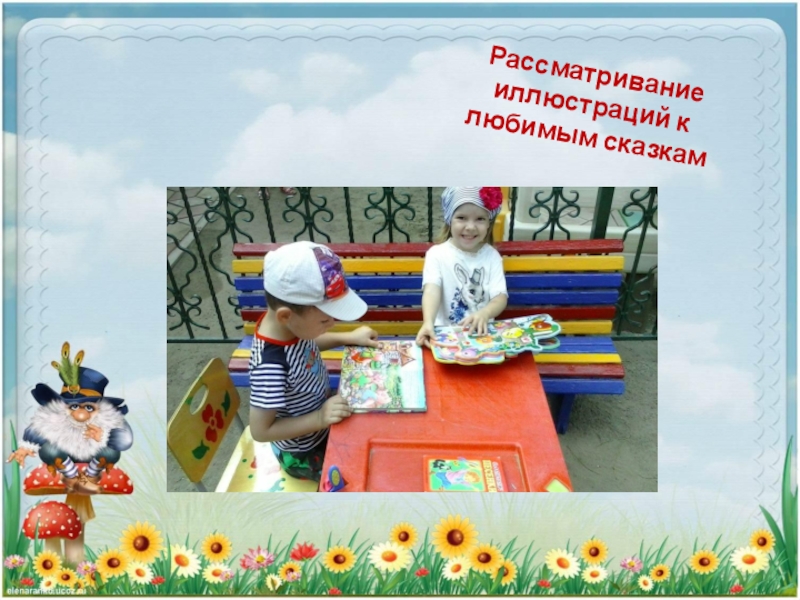 Слайд 9Рассматривание иллюстраций к любимым сказкам
