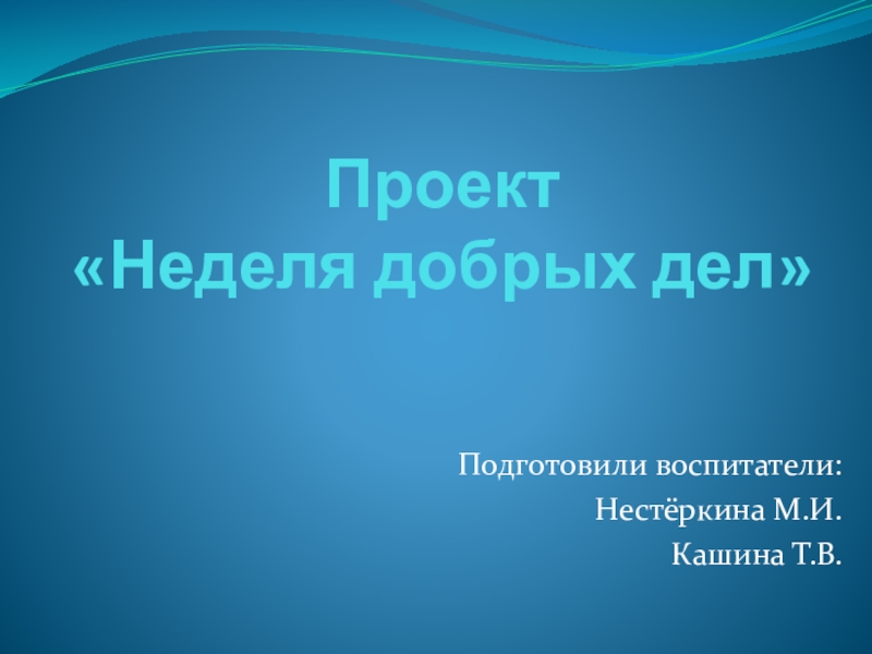Проект  «Неделя добрых дел» Подготовили воспитатели:Нестёркина М.И.Кашина Т.В.