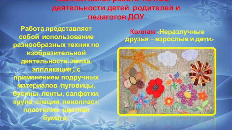 Совместная творческая работа воспитателей, родителей с детьми. Коллаж «Неразлучные друзья – взрослые и дети»