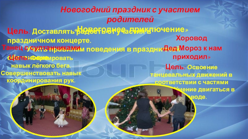 Цель: Освоение танцевальных движений в соответствии с частями музыки. Умение двигаться в хороводе.