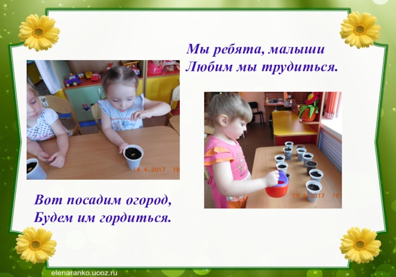 Формировать представления о структуре трудового процесса. Развивать интерес к посадке растений (лук), посеву крупных семян (бобов, гороха).