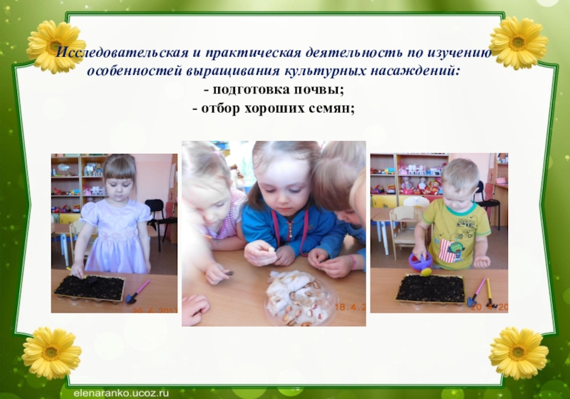 Слайд 11Исследовательская и практическая деятельность по изучению особенностей выращивания культурных насаждений: