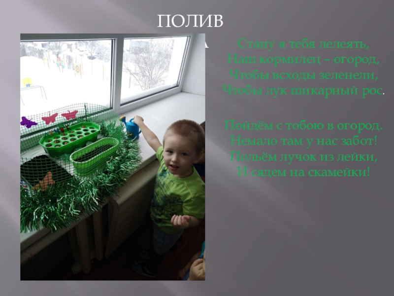 Польём лучок из лейки,