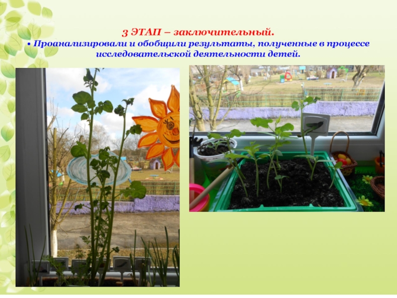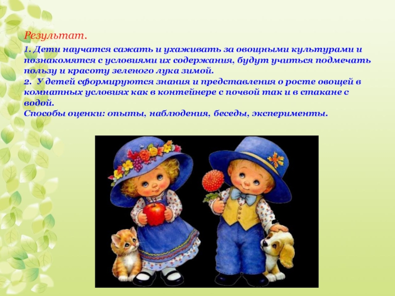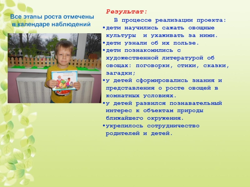 у детей сформировались знания и представления о росте овощей в комнатных условиях.