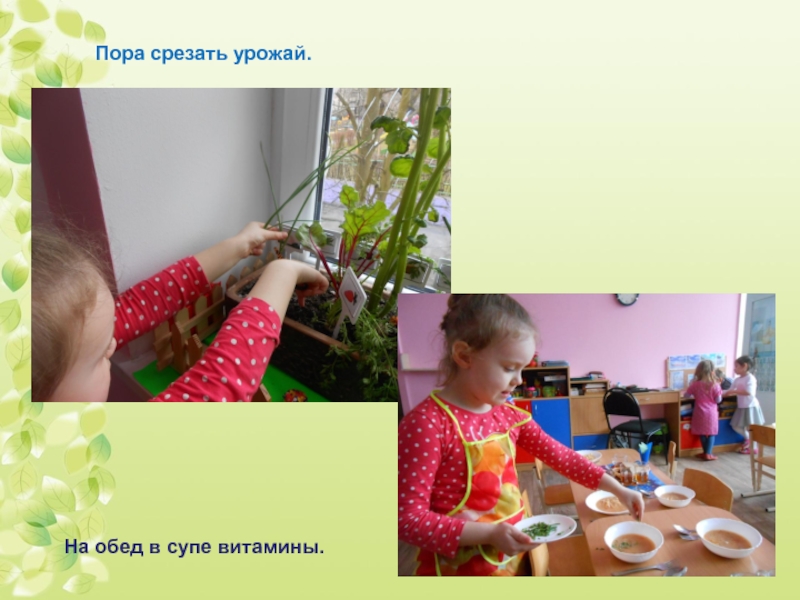1. Учить детей ежедневно ухаживать за посадками овощей в комнатных условиях.