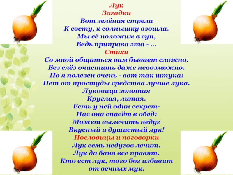 Кто ест лук, того бог избавит