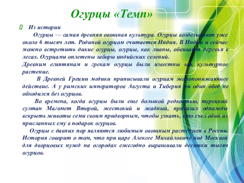 Огурцы «Темп»