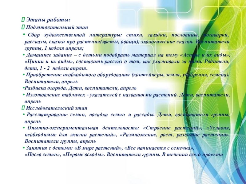 способствовать поиску новой информации об уже известных объектах (в нашем случае об овощах), дать наглядное представление детям о необходимости света, тепла, влаги, почвы для роста растений.